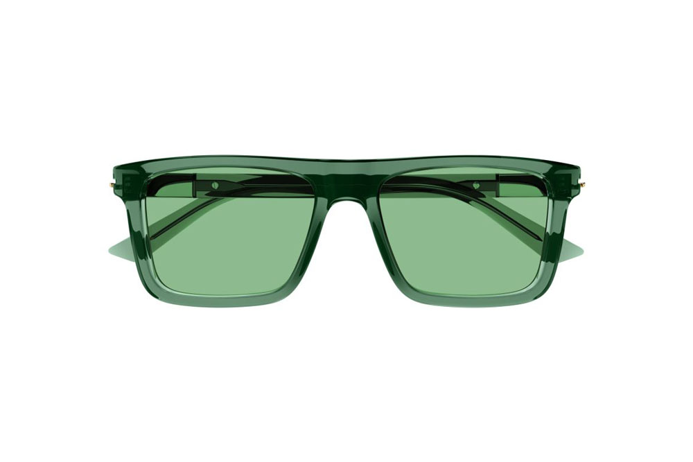 The men's sunglasses collection by Gucci presents designs from classic aviator styles to rectangular shapes.